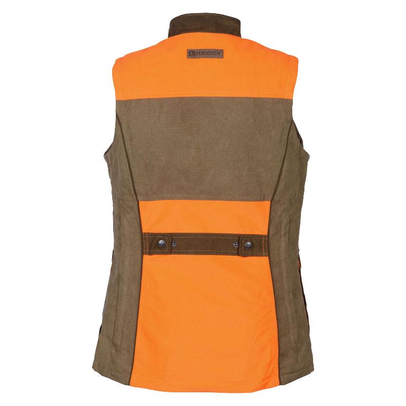 Características : • Reforços e elementos em laranja 65% poliéster, 35% algodão. • Detalhes em camurça 100% poliéster. • Forro 100% poliéster. • Colarinho mao, fecho com botões de pressão na frente. • Bolsos para as mãos, 2 grandes bolsos inferiores com 2 fileiras de porta-cartuchos integradas (balas e chumbos) e abas de suporte de abertura. • 1 bolso para telefone. • Fendas laterais, martingale nas costas. • Saco de caça com forro impermeável e lavável com aberturas laterais com zíper.