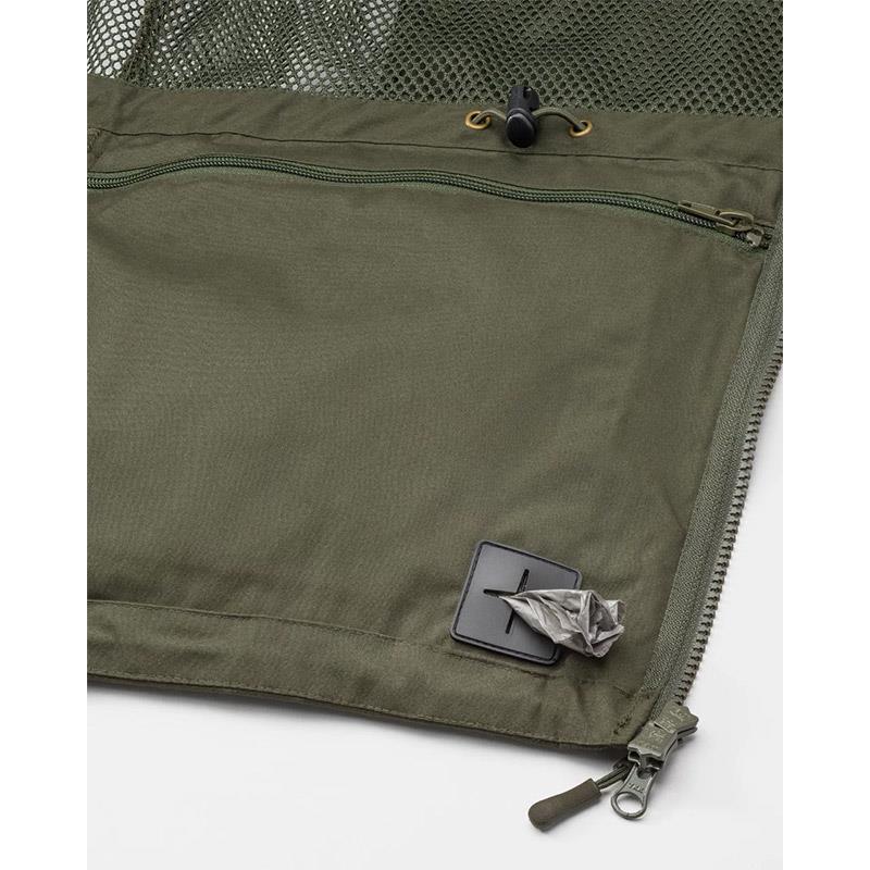 Bolsos frontais em ambos os lados com botões magnéticos e argola em D elástica. Possibilidade de fixar a tampa do bolso da frente no interior para que possas aceder facilmente aos teus objetos. Bolsos para as mãos e bolsos duplos no peito. Dois bolsos internos - fáceis de alcançar, um dos quais com uma abertura em borracha para sacos de excrementos caninos. Pequenos bolsos no peito para clicker e lápis.