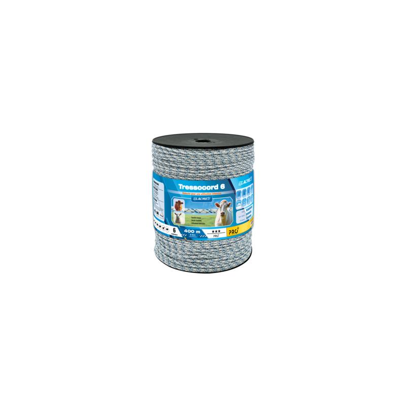 O TRESSOCORD X6 é um cordão trançado, combinação perfeita entre robustez, visibilidade e resistência ao desgaste. 6 condutores inox para uma resistência ainda melhor às manipulações repetidas. Pode ser usado tanto em parcelamento intensivo como em cerca fixa graças ao seu diâmetro de 3 mm e à sua fabricação trançada.