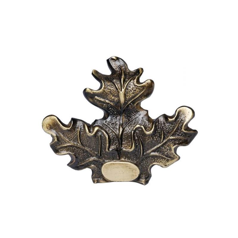 este adorno em folha de carvalho também oferecerá uma apresentação muito estética ao seu troféu. acabamento cor latão envelhecido.