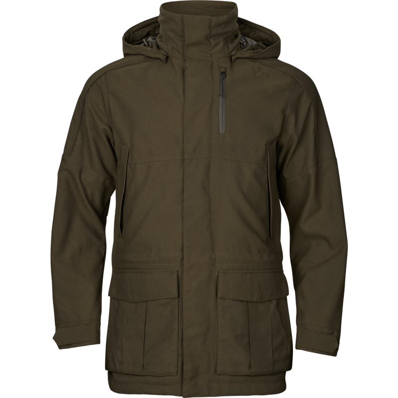 A nossa jaqueta Pro Hunter GTX Legacy Jacket é uma celebração do 40º aniversário da Härkila e uma evolução da icónica Pro Hunter Endure. Esta jaqueta é construída para resistir em condições desafiadoras de caça. É feita com o resistente tecido AirTech™, que é à prova de vento, repelente à água e anti-manchas. No interior, a membrana GORE-TEX® garante uma impermeabilização e respirabilidade fiáveis. Confia nesta jaqueta para dar o melhor de si quando mais conta. A jaqueta tem dois grandes bolsos frontais com buracos de drenagem, bolsos para aquecer as mãos forrados a polar com uma alça QuickLoad que mantém o bolso de cartuchos aberto durante o disparo - e um porta-cartuchos para espingardas. Há um bolso interno prático e, sob a aba da tempestade do zíper, um bolso impermeável para um celular ou outro, ao qual se pode acessar sem ter que deszipar a jaqueta. Outras características incluem um bolso para rádio, um capuz removível, um zíper bidirecional durável e pulsos, bainha e cintura ajustáveis. A Pro Hunter GTX Legacy oferece desempenho e confiabilidade em cada caça e tem uma garantia Pro Hunter de 5 anos.