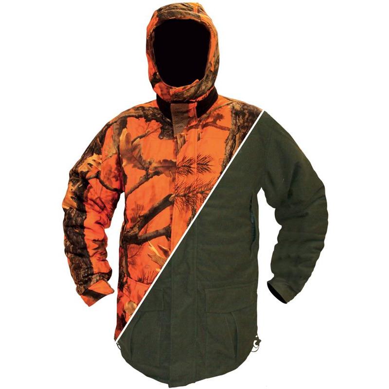 Características: • Inovador casaco impermeável reversível de camuflagem, com forro quente e isolante. • Camuflagem BIG GAME em Durasuede Beyond Vision de um lado e silencioso Polytricott verde do outro. • Camada isolante 3M no interior para manter uma temperatura corporal constante. • Design ergonómico EDS. • Bolsos para rádio e GPS. • Bolsos cargo à frente com fecho magnético. • Capuz fixo com painel de ventilação frontal. • Membrana impermeável laminada PU e costuras estanques. • Alta impermeabilização (8.000 mm) e respirabilidade (5.000 gr/m2).