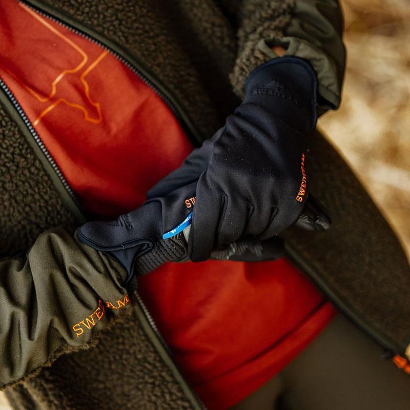 • Luva fina e à prova de vento. • Fabricada em tecido softshell para um melhor ajuste e mais conforto. • Dedos com "smart touch" para um manuseio mais fácil do telefone. • Punho alto em neoprene fino e flexível para um bom calor no pulso.