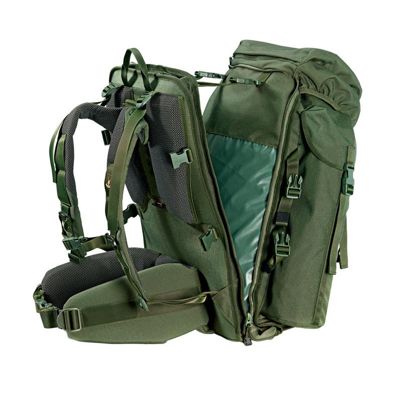 Sac à dos en Cordura naturel avec compartiment à carnier en PVC lavable et porte-fusil. Nouveau dos en mesh avec caoutchoucs internes perforés pour une plus grande respirabilité, fermetures latérales avec fermetures éclair YKK et crochets de confinement du gibier.