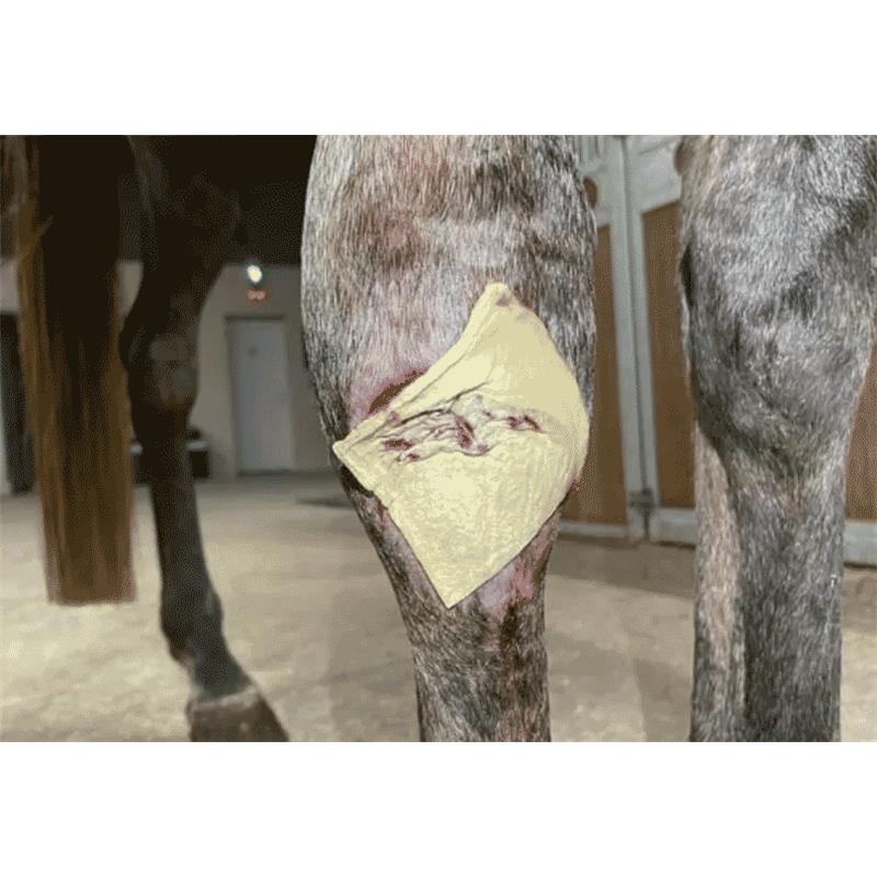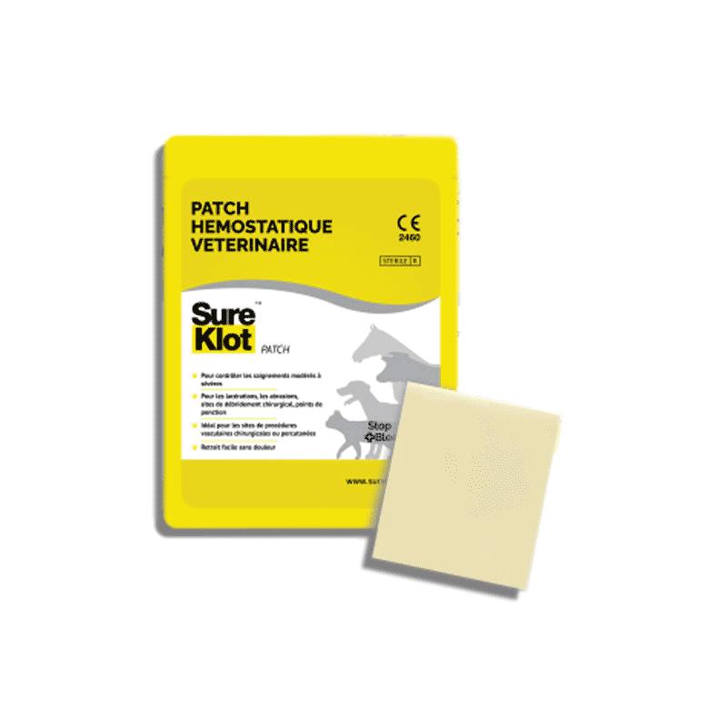 Pensos para o cuidado das feridas de animais de estimação, o adesivo SureKlot é um penso bioativo hemostático. Funciona através de um mecanismo único de mucoadesão baseado na carga elétrica que forma uma barreira mecânica na área de sangramento. A tecnologia de fabricação não é uma compressa impregnada, mas é 100% quitosana, sem resíduos de pó ou reação térmica. POLISSACARÍDEO natural composto de nanômeros de glucosamina e N-acetil glucosamina = Quitosana com carga catiónica (+Ve). A quitosana foi tratada para perder sua carga ácida de (6,4 PH) para um PH fisiológico de (7,4 PH). A sua remoção é muito fácil com água, por isso deve-se ter sempre cuidado em protegê-lo da humidade e da água com uma ligadura o mais selada possível, como para todos os dispositivos de quitosana impregnados ou não (100%).