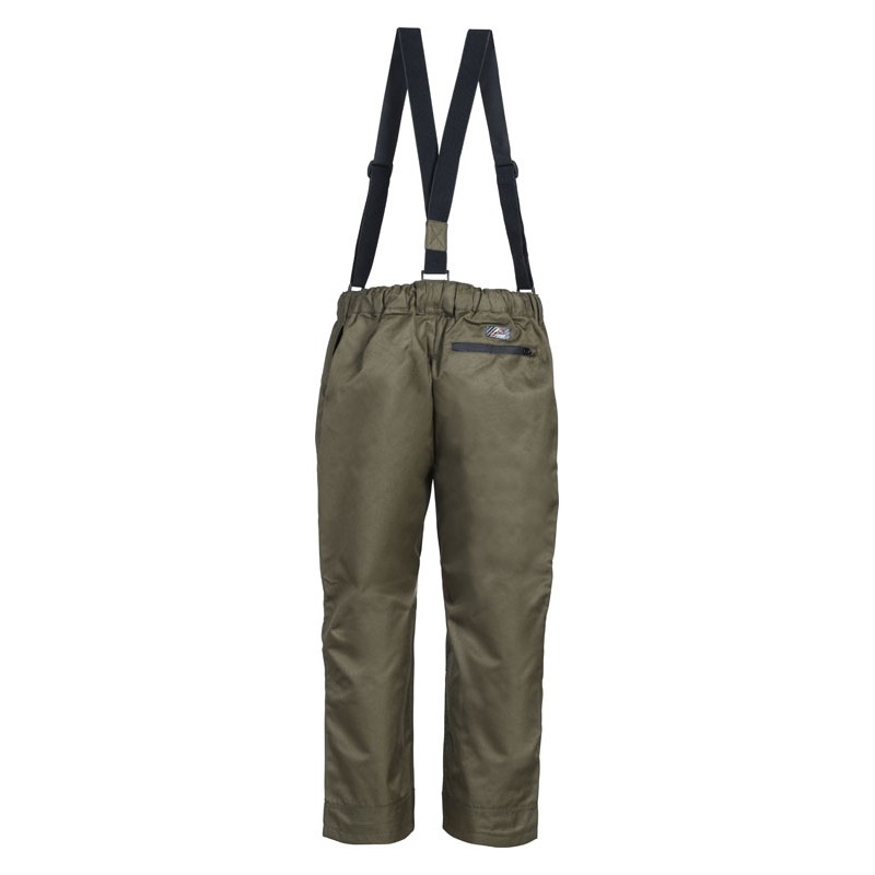 Características: • Calções de caça ultra resistentes e impermeáveis. • 100% poliéster ripstop reforçado com revestimento de poliuretano, costuras seladas. • Forro 100% poliéster. • Joelhos pré-formados para melhor ergonomia. • Cinto elástico anti-deslizamento. • Alças ajustáveis e removíveis. • 2 bolsos traseiros com zíper e fendas laterais para as mãos.