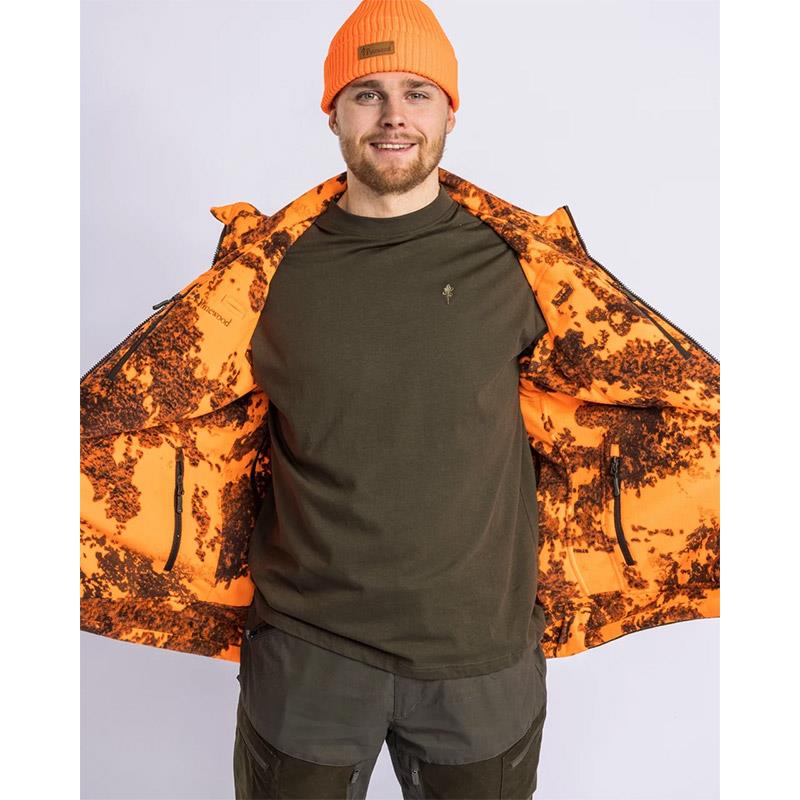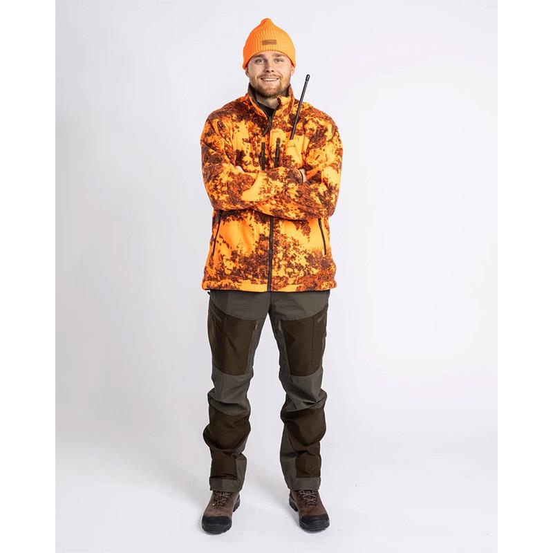 O casaco polar reversível Furudal é um casaco polar inteligente e reversível com um lado de cor única e um lado com o padrão oficial True Timber® Camou. É adequado para o caçador que quer mudar rapidamente de aparência monocromática para camuflada, ou de uma cor única para a cor de sinalização. O casaco é à prova de vento e resistente à água, podendo ser utilizado vantajosamente como vestuário externo assim como camada intermédia sob outro casaco. O tecido tem alta respirabilidade e uma lâmina ultra macia de 3 camadas que o torna extra macio e silencioso. As aberturas de ventilação nas laterais podem ser abertas para aumentar o fluxo de ar se estiveres com muito calor. Ambos os lados do casaco polar têm bolsos de rádio duplos adequados para atiradores destras e canhotos, além de bolsos frontais e um bolso de caça, todos equipados com fechos éclair.