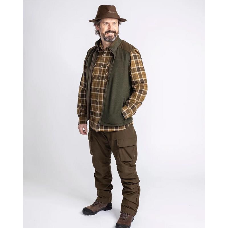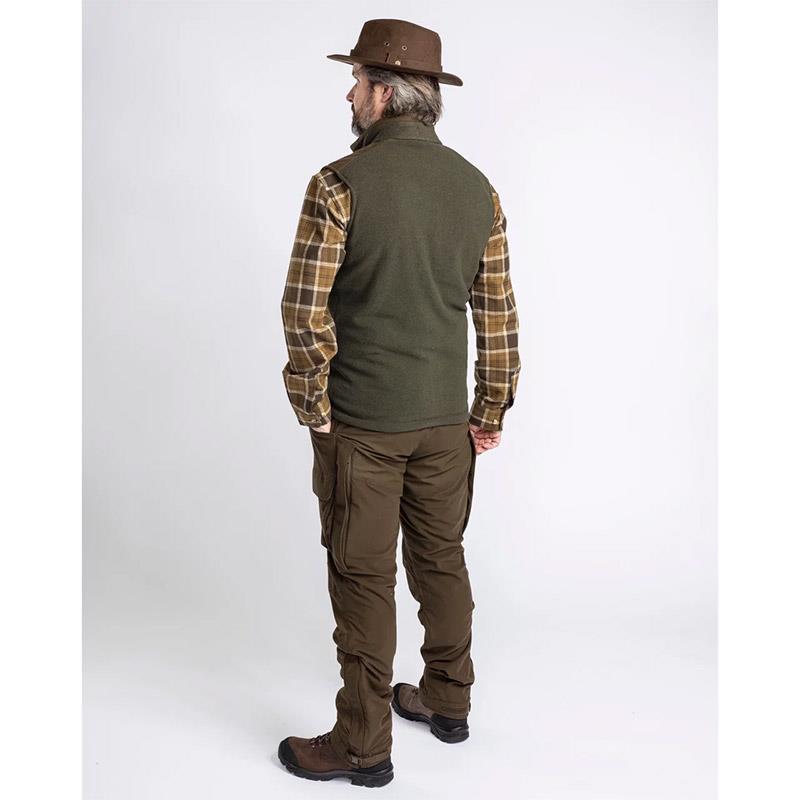 O colete polar Småland Forest é fabricado a partir de polar de poliéster reciclado de 240 g tingido com a solução e.dye® - um sistema de tingimento sem água, tornando-o uma escolha mais respeitadora do meio ambiente. O poliéster reciclado é suave e silencioso, tornando o colete ideal para a caça. Os ombros e a gola são reforçados. O colete tem dois bolsos frontais com fecho e um fecho de correr de dupla direção na frente para que possas abri-lo por baixo para aumentar o conforto e a mobilidade quando te sentares.