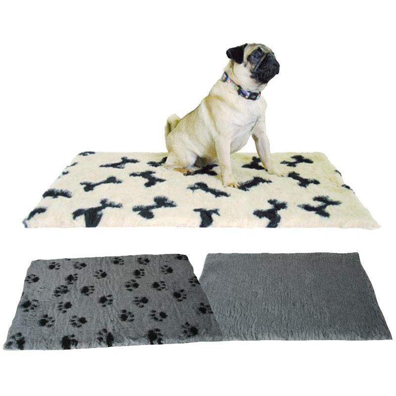 Características: • Ideal para uma cama extra, no porta-malas do carro, caixa de transporte... • Confortável e espesso, isola do frio • Duas cores: cinza sólido e cinza com padrão de patas • Lavável na máquina a 60° • 100% poliéster